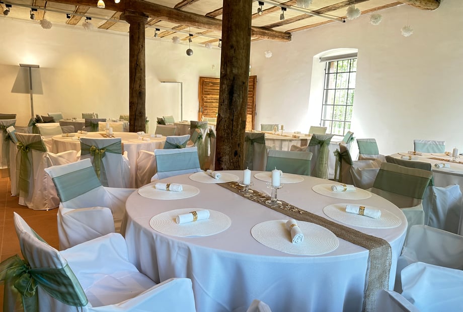 Das Besondere: Bei uns gibt es keine Sperrstunde und völlige Freiheit bei der Wahl eurer Dienstleister. Feiert so lange, wie ihr möchtet – mit eurem Wunschcaterer, eurer eigenen Getränkewahl und voller kreativer Freiheit. Im Hochzeitspaket sind Tischwäsche, Hussen, Geschirr, Dekoration, Auf‑ und Abbau sowie die Endreinigung bereits enthalten – damit ihr euch ganz auf euren Tag konzentrieren könnt.