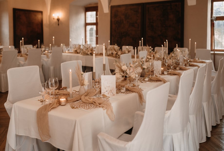 Wir haben unzählige schöne Ecken - vom Rosengarten, über die Brücke mit der Burg im Hintergrund, den Außenbereichen mit unschlagbarem Ausblick bis zur Empore für die perfekten Sundowner Bilder. Welche Spots für euch am besten passen, dürft ihr mit euren Fotografen entscheiden. Und selbst bei Regenwetter könnt ihr euch in den verschiedenen Sälen komplett austoben.