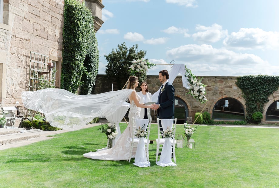 • Im Innenhof als zentralem Herzstück der Burg – ideal für Empfänge, Gruppenfotos oder den Beginn eurer Feier.