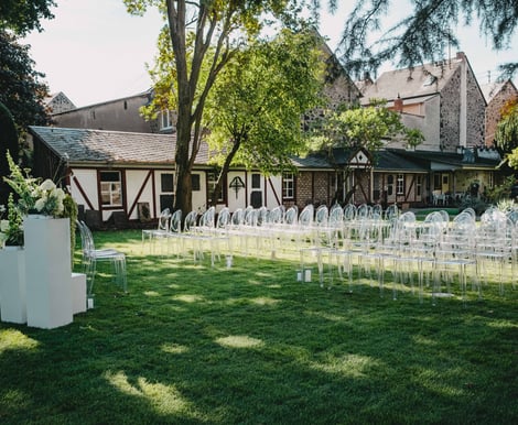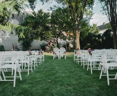 Umgeben von grüner Natur und dem historischen Charme des Anwesens können hier sowohl Empfänge vor und nach der Trauung als auch die Zeremonie selbst stattfinden.