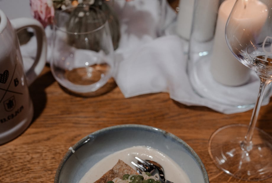 DAS WEINHEIM steht für großartige Weine und eine kreative Küche mit alpinem Einschlag. Kulinarisch feiern wir Hochzeiten standardmäßig im Flying-Menü-Konzept: mehrere Gänge in kleinen Portionen, die entspannt serviert werden – perfekt, damit sich eure Gäste frei bewegen, miteinander ins Gespräch kommen und der Abend ganz natürlich fließt.