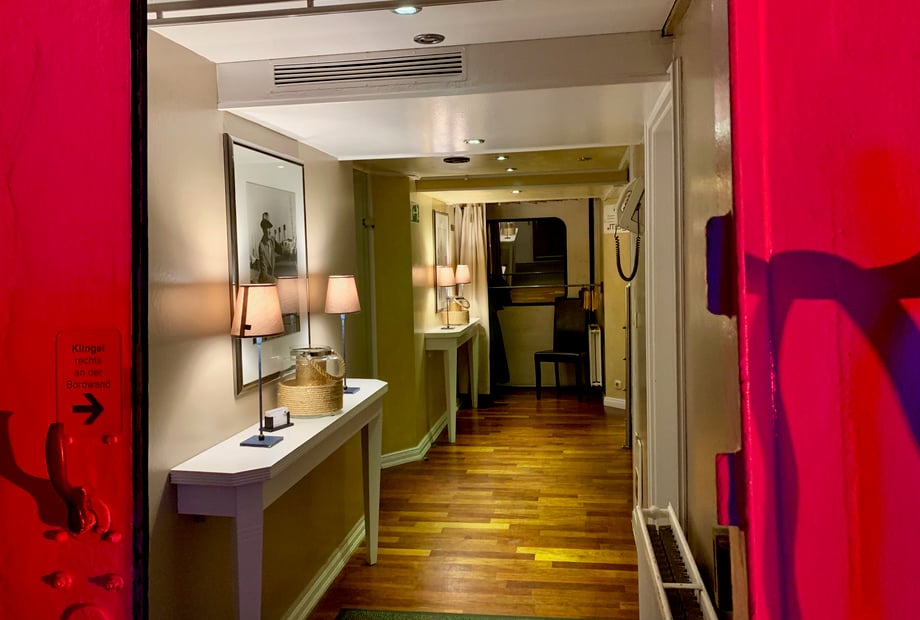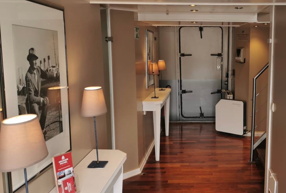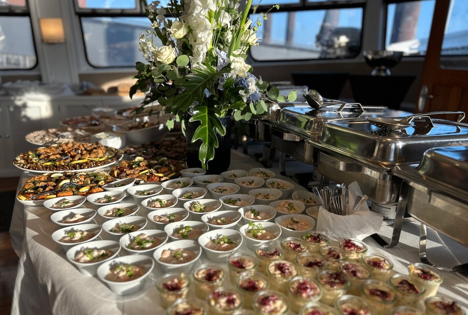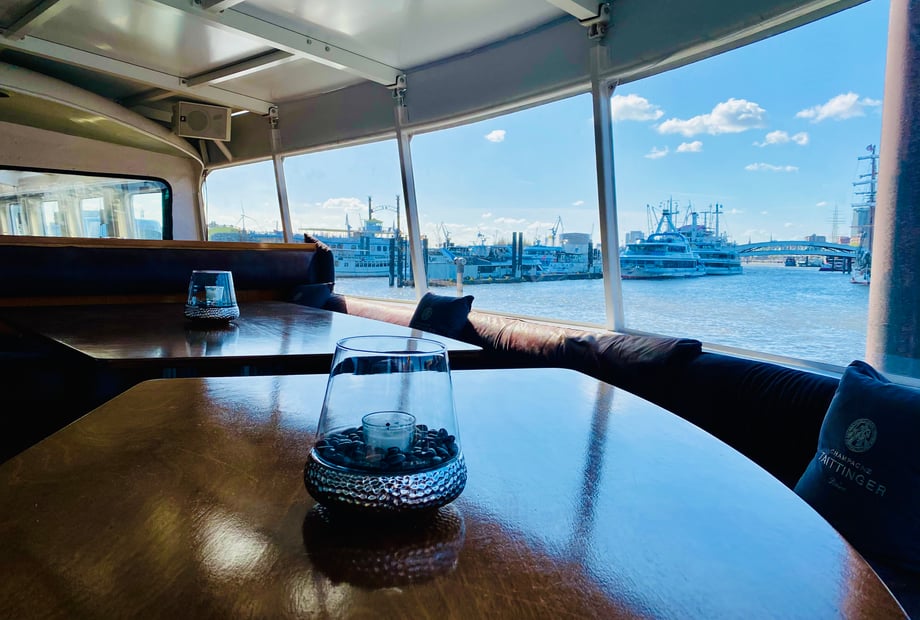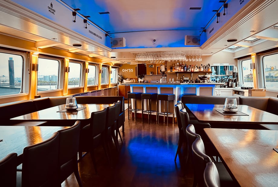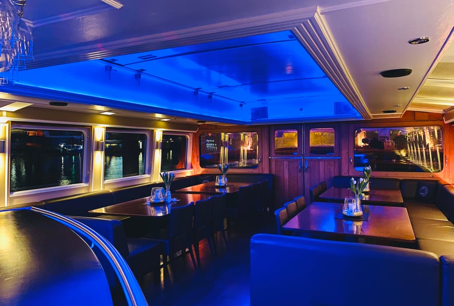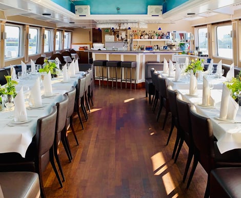 Das Interieur an Bord besticht durch edle Holzböden und eine zeitlose, gemütliche Einrichtung. Ganz gleich, ob Sie eine kleine, intime Feier oder ein größeres Fest planen – das Schiff passt sich Ihren Wünschen an. Im Sommer können Sie das Salondach öffnen und so eine luftige Cabrio-Atmosphäre genießen. Die Location ist das ganze Jahr über nutzbar und wetterunabhängig.