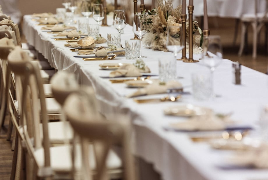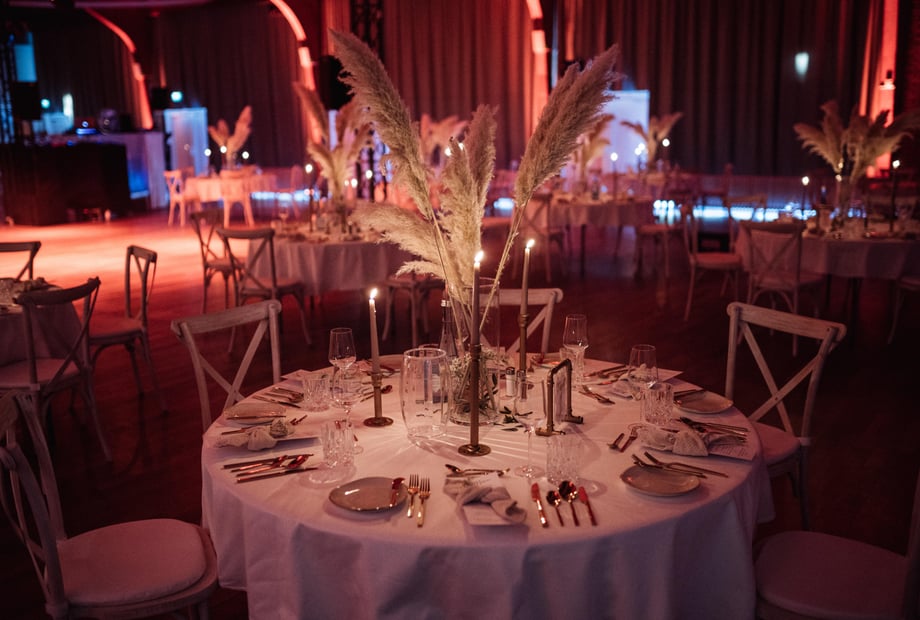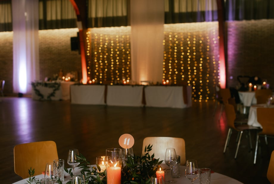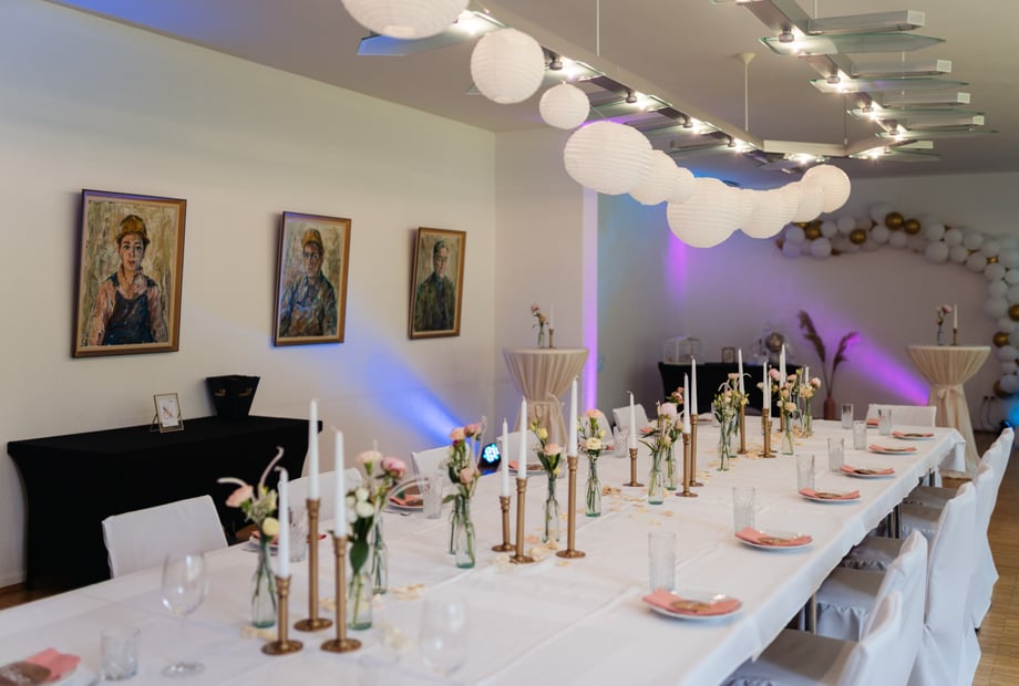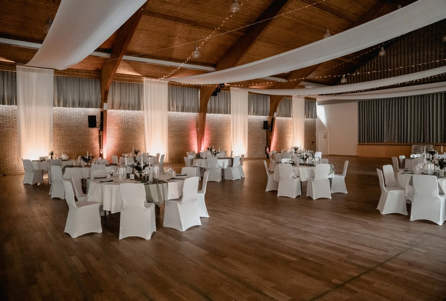 Einer der schönsten persönlichen Akzente, die wir bei einer Hochzeit erlebt haben, war der Moment, als das Brautpaar vor allen Gästen für 5 Minuten allein in den fertig geschmückten Saal kam.