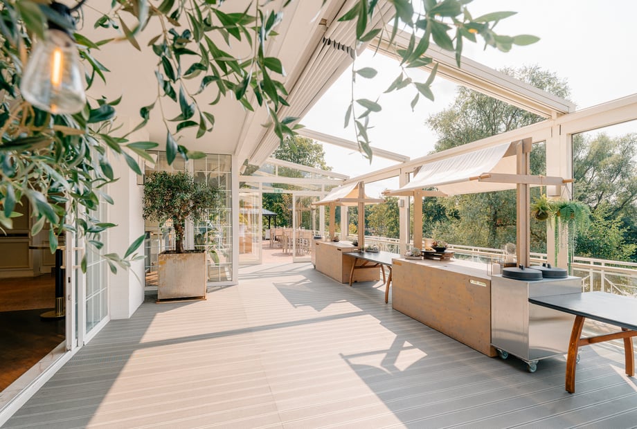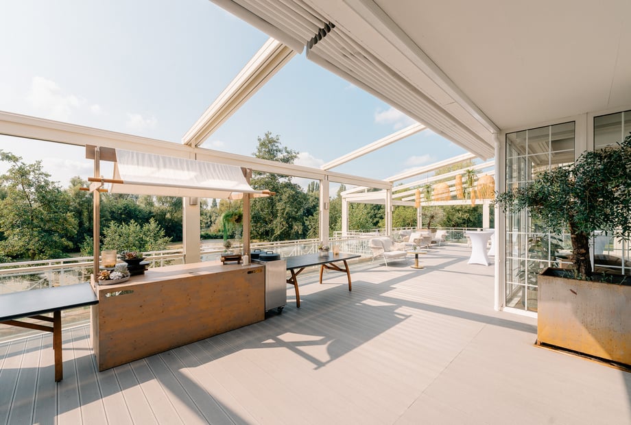 Zunächst ist Der Deichgraf sowohl im Innen- als auch im (wunderschönen) Terrassenbereich professionell und hochwertig mit Licht- Ton- und Raumtechnik ausgestattet. Durch die einfahrbare Glasfront sowie flexible Dachkonstruktion kann auf jede Wetterlage flexibel reagiert werden und ermöglicht damit Planungssicherheit. Die räumliche Aufteilung sowie Gestaltung ist zudem ideal für unsere Hochzeitsfeier inkl. Trauzeremonie gewesen.