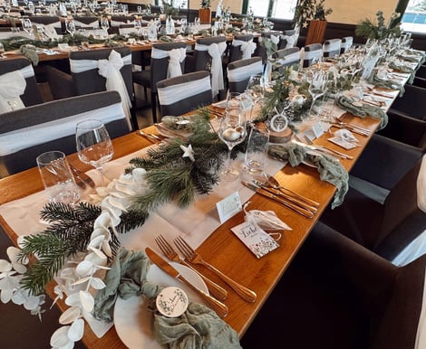 Ein persönlicher Touch, der uns immer besonders begeistert, sind die kreativen Ideen der Brautpaare, wenn es um die Dekoration geht. Wir hatten zum Beispiel ein Paar, das die gesamte Tischdeko auf ihre Hobbys abgestimmt hat: kleine Bücher als Tischkarten, weil sie beide leidenschaftliche Leser sind, oder handgeschriebene Botschaften an jedem Platz, die den Gästen ein Lächeln ins Gesicht zauberten.