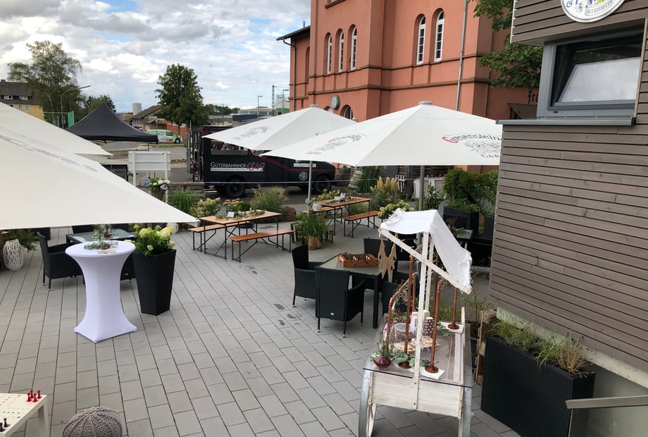 Die denkmalgeschützte Güterhalle von 1849 haben wir in 2017/2018 zu einer modernen Eventlocation umgebaut. Mittlerweile finden bis zu 30 Hochzeiten jährlich statt. Wir bieten unseren Brautpaaren folgende Leistungen an: Location mit eigener Speisen- u. Getränkebewirtung - Das Brautpaar kümmert sich um die Dekoration(am Vortag möglich), DJ/Musik sowie die Hochzeitstorte. Unsere Gäste schätzen insbsondere unsere kulinarischen Köstlichkeiten, sei es ein Grill- oder Roastbeef-Lachs Buffet. Beim der Gestaltung des Essens sind wir sehr flexibel. In der Umgebung gibt es Übernachtungsmöglichkeiten, die Location liegt zwischen den Städten Marburg u. Gießen und hat einen Bahnanschluss In Fronhausen besteht die Möglichkeit, eine freie Trauung in einem privaten Gutspark durchzuführen. Unser erfahrenes Personal mit sehr geringer Fluktuation sorgt für einen professionallen und reibungslosen Ablauf Ihrer Hochzeitsfeier, Chefin und Chef arbeiten aktiv am erfolg mit.