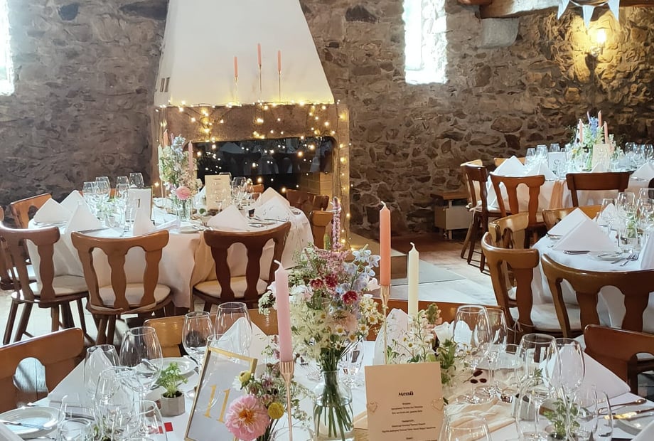 Ob kleine Hochzeitsgesellschaft mit zehn Personen oder eine größere Feier mit bis zu 120 Gästen - bei uns kommst Du unter. Wir kümmern uns hierbei gerne um alle Details, damit Du eine entspannte und unvergessliche Feier erleben kannst. Ob ausgewählte Speisen, Musik oder ländliches Ambiente - bei uns erwartet Dich ein starkes Gesamtpaket. Mit unseren sechs idyllischen Doppelzimmern bieten wir Dir und Deinen Gästen sogar die Möglichkeit zur Übernachtung. Sprich uns rechtzeitig an, damit Du im Gasthaus Raben Horben unterkommen kannst.