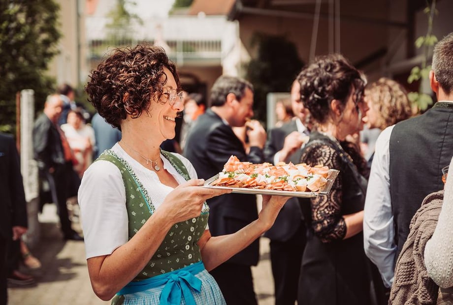 - Rustikaler Außenbereich: Ein charmanter Stadel und eine urige Scheune schaffen eine besondere Atmosphäre. Der Biergarten lädt zu einem Sektempfang unter freiem Himmel ein.