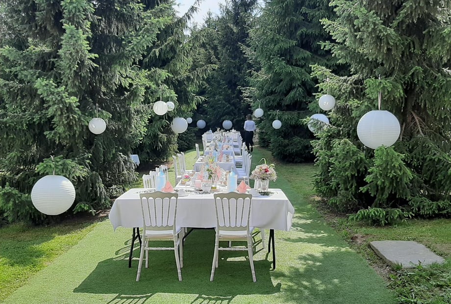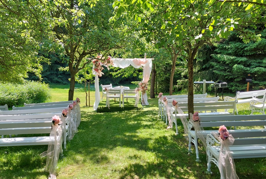 Im April unter weiß blühenden Kirschbäumen gefolgt von den rosa Blüten der Apfelbäume, im Mai vor Fliederbäumen un weiß & lila und Azaleen in herrlicher Farbenpracht, im Juni im einmaligen LILA MOHNFELD auf den Feldern rings um die Kapelle, im Juli unter dem Kirschbaum mit lauter herrlich roten Kirschen und Mitte Juli vor gigantisch großen gelben Lilien, im August vor wundervoll duftenden Rosen, im September unter blauen Pflaumenbäumen, im Oktober im herrlichen gelb, organe, rot des Herbstlaubes der Obstbäume und der Weinblätter, im November vor dem gemütlich knisterden Kamin, im Dezember unter dem wunderschönen 3-4m hohen rot & gold geschmückten Weihnachtsbaum neben dem Kamin. Im Januar & Februar vielleicht im glitzernden SCHNEE, da wir schon zum Erzgebirge gehören. Im Februar bis April in einem Blumenherz aus nacheinander blühenden Krokussen, Osterglocken und Tulpen. Im Mai duftet es herrlich nach Maiglöckchen, die rings um die alten Apfelbäume blühen. Zu jeder Jahreszeit gibt der "Märchenbrunnen aus dem Froschkönig" mit dem Tauben-Schloss und der romantischen Hochzeitskapelle im Hintergrund ein wunderbares Motiv. Oder mitten in unserem Tannenwald ein Foto mit den Sonnenstrahlen, die durch die Tannenzweige scheint, oder ein Foto in mitten der Blumenwiese hinten beim Sauna-Garden. Oder Fotos an den schmiedeeisernen Toren und Geländern, die vor der Kapelle und hinten im Obstgarten zu finden sind. Oder ein Foto an den magischen weißen Quarzfelsen, welche beim Bau der Kapelle im Boden unter der Kapelle gefunden wurden. Nicht zu vergessen, die riesegen alten Bäume, die wohl selten fotografiert werden, weil der urlate dicke Bergahorn und die gewaltige Linde zu hoch für die Fotos sind ;-) .... Wer bei uns keine schönen Fotomotive findet, der mag es wahrscheinlich nicht romantisch und naturnah ...