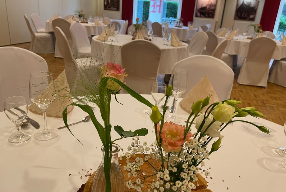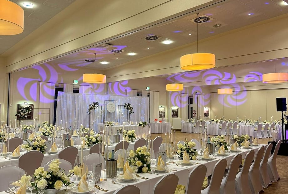 - Stimmungsvolle Dekoration: Ob Stuhlhussen, Blumenschmuck oder moderne Licht- und Tontechnik – das Hotel sorgt für eine festliche Atmosphäre, die zu Ihnen passt.