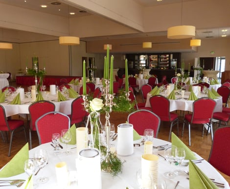 - Weitere Bereiche: Für Sektempfänge oder kleinere Zusammenkünfte stehen das Restaurant, ein Clubzimmer und eine Terrasse mit Platz für rund 55 Personen zur Verfügung.