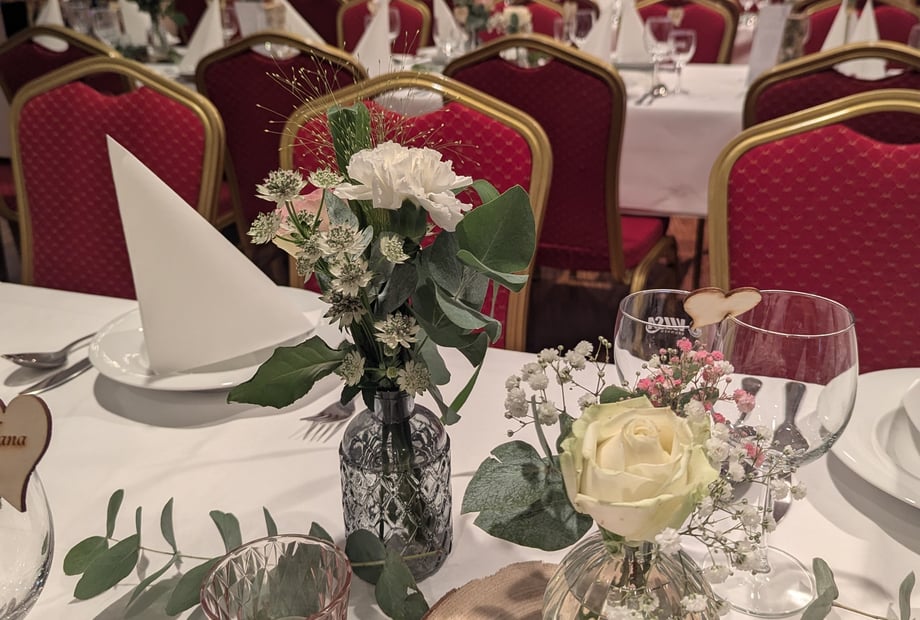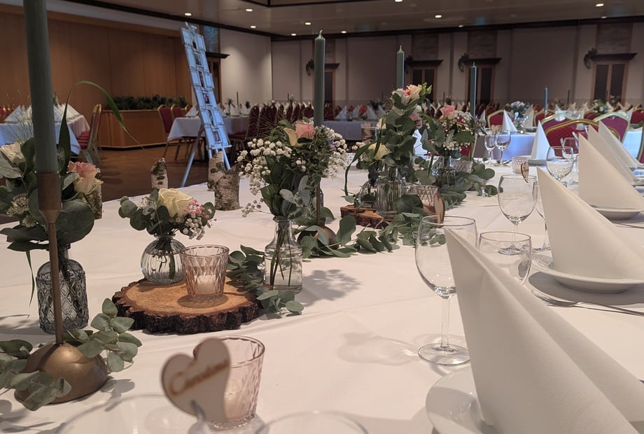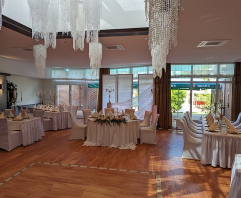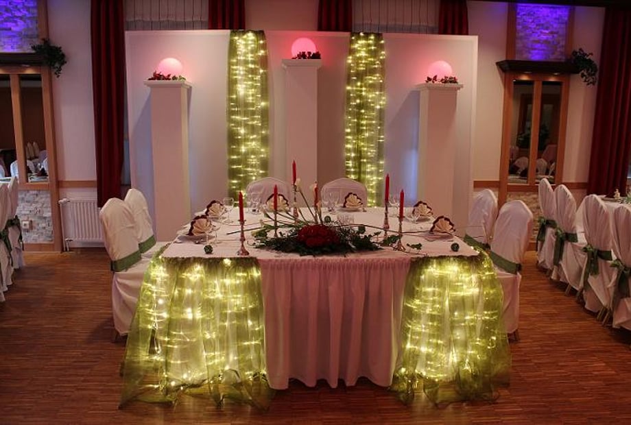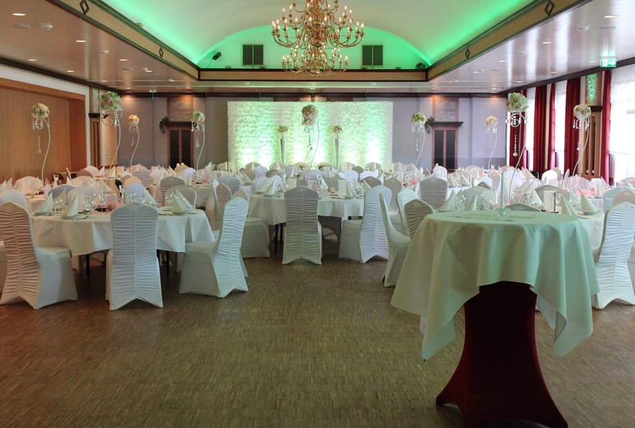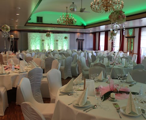 Egal ob 30 oder 300 Personen, der komplett neu gestaltete Festsaal ist die perfekte Location für Ihre Hochzeitsfeier! Durch die moderne Lichtanlage, das Echtholzparkett, die integrierte Theke und die flexible Bühne wird jedes Hochzeitsfest zu einem individuellem und unvergesslichen Erlebnis. Es grenzt direkt am Saal der wunderschöne Hochzeitsgarten für Empfänge, Trauungen oder Fotos. Das einzigartige „Fahrbare Buffet“ lässt keine Wünsche offen durch seine reichhaltige Auswahl. Genießen Sie die angenehme Atmosphäre, während das Buffet mit musikalischer Untermalung reingefahren wird. Der kleine Saal ist perfekt für Ihre Feier im familiären Rahmen. Von 30 – 70 Personen finden hier einen Platz. Sobald das fahrbare Buffet rausgefahren wurde, kann der DJ die Tanzfläche zum qualmen bringen. Auch am kleinen Saal grenzt der wunderschöne Hochzeitsgarten für z. B. Empfänge, freie Trauungen oder Fotos. Egal welche Farbe oder Größe Ihre Feier bekommen soll, dieser Saal passt sich dafür an. Genießen Sie ganz nach Ihren Wünschen einen unvergesslichen Tag!