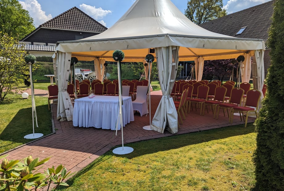 Unser eigens angelegter Hochzeitsgarten, ein fahrbares Büffet, familiäres Umfeld ( Familiengeführt in der 4. Generation )