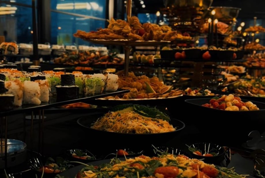 Die Optik des Saals ist großartig, die Tische sind wunderschön gestaltet und die Bühne ist perfekt positioniert. Die Mahlzeiten sind köstlich und sättigend, es wird unbegrenzter Service angeboten, der Dessertbereich am offenen Buffet ist sehr reichhaltig und sieht optisch wunderbar aus. Das Essen und die Desserts, die wir gegessen haben, waren wirklich sehr lecker, die saubere und hygienische Umgebung, das moderne Erscheinungsbild, ich kann es jedem empfehlen.Die Optik des Saals ist großartig, die Tische sind wunderschön gestaltet und die Bühne ist perfekt positioniert. Die Mahlzeiten sind köstlich und sättigend, es wird unbegrenzter Service angeboten, der Dessertbereich am offenen Buffet ist sehr reichhaltig und sieht optisch wunderbar aus. Das Essen und die Desserts, die wir gegessen haben, waren wirklich sehr lecker, die saubere und hygienische Umgebung, das moderne Erscheinungsbild, ich kann es jedem empfehlen.