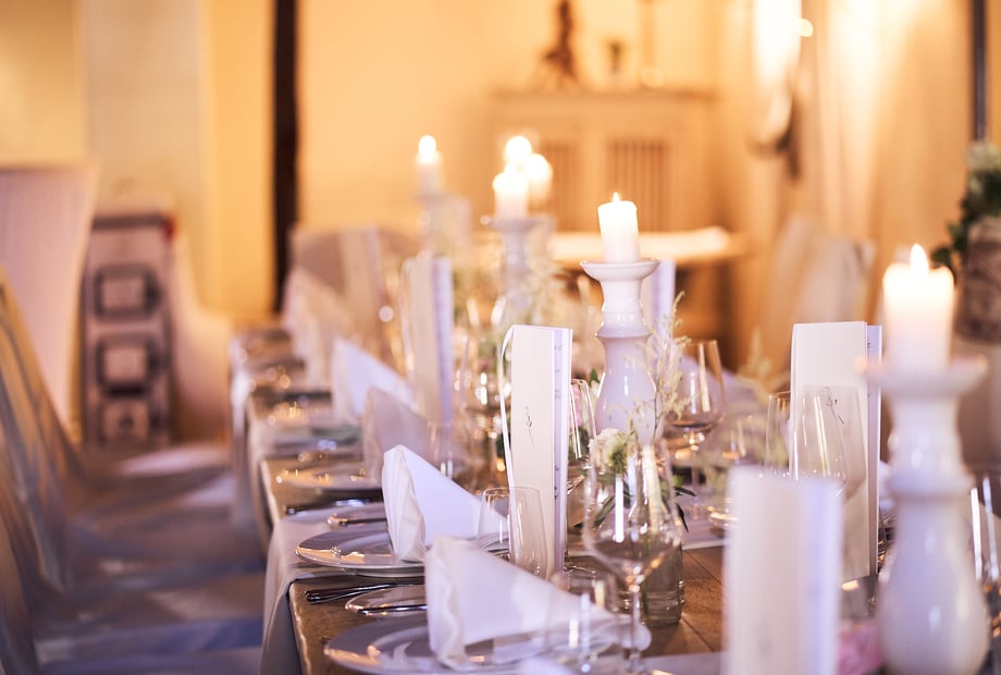 Das Küchenteam verwöhnt Sie und Ihre Gäste mit modernen, leichten und mediterranen Gerichten. Individuelle Menüs oder Buffets werden ganz nach Ihren Wünschen zusammengestellt – auch vegane Optionen sind möglich. Ein besonderes Highlight ist der gut sortierte Weinkeller, der Ihr Hochzeitsmenü perfekt ergänzt.