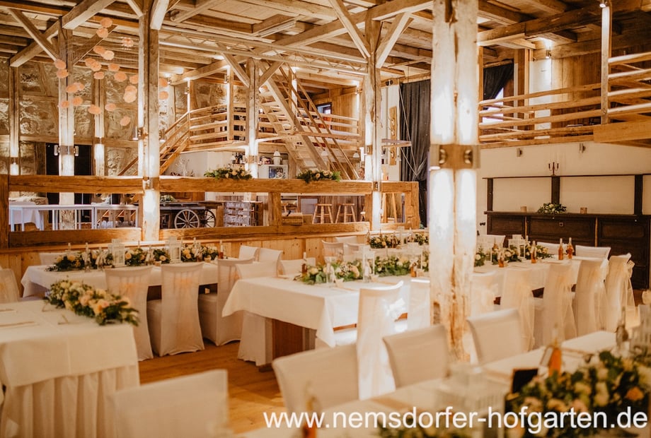 5. Naturnah: Umgeben von Wiesen und Wäldern, ermöglicht der Nemsdorfer Hofgarten eine naturnahe Hochzeitsfeier, die eine entspannte und harmonische Atmosphäre schafft.