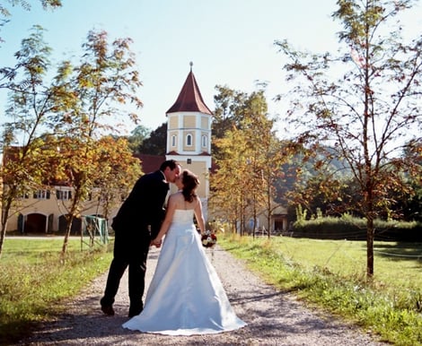 Schloss Blumenthal ist geprägt vom einmaligen und absolut individuellen Charme des historischen Anwesens, das liebevoll und behutsam von den EigentümerInnen restauriert wurde und wird. Dieser Ort, mit seinem vielseitigem Raumangebot und dem mit Designpreisen ausgezeichneten 40-Zimmer-Hotel, macht Eure Feier zu einem unvergesslichen Ereignis! Auf unserem Platz steht eine verträumte kleine, mit Stuck verzierte Barockkirche. Hier kann Eure katholische Trauung stattfinden. Auch für freie Trauungen gibt es sehr schöne Räume in Blumenthal. Wenn es das Wetter erlaubt, könnt Ihr auch im Freien - in unserem wunderbar romantischen Schlosspark - eine Zeremonie abhalten. Gerne bieten wir Euch einen Sektempfang nach der Trauung direkt vor der Kirche oder im Schlosspark. Kaffee und Kuchen könnt Ihr dann unter den schattigen Kastanien eines der schönsten Biergärten Bayerns genießen. Der idyllische Innenhof mit den umliegenden Gebäuden von Blumenthal bietet viel Raum für Eure Hochzeitsaktivitäten. Hier befindet sich auch unser Spielplatz, auf dem sich Eure Kinder in Sichtweite vergnügen können. Am Abend nehmt Ihr dann das Hochzeits-Dinner in Bio-Qualität in dem wunderschön dekorierten Hochzeitssaal ein und geht danach nahtlos über zu einer unvergesslichen Party im Tangosaal. Unsere Säle sind für bis zu ca. 100 Personen ausgelegt. Auf unserer Homepage findet Ihr weitere Eindrücke von Blumenthal. https://www.schloss-blumenthal.de/hochzeit-location-schloss/ Wir freuen uns, Euch in Schloss Blumenthal begrüßen zu dürfen!