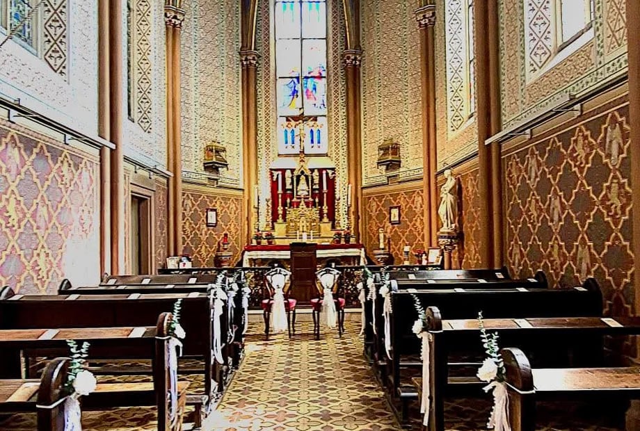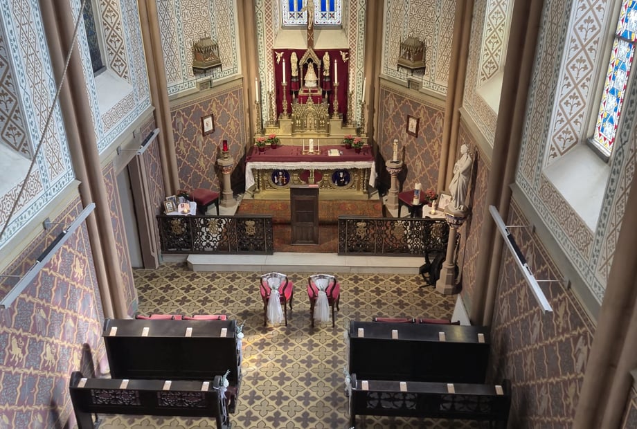 Die Schlosskapelle mit ihrer neogotischen Farbenpracht ist der ideale Rahmen für eine außergewöhnliche kirchliche Trauung (römisch-katholisch und evangelisch) in privater Atmosphäre. Zusammen mit der Fürstenloge stehen den Gästen etwa 40 Sitzplätze zur Verfügung.