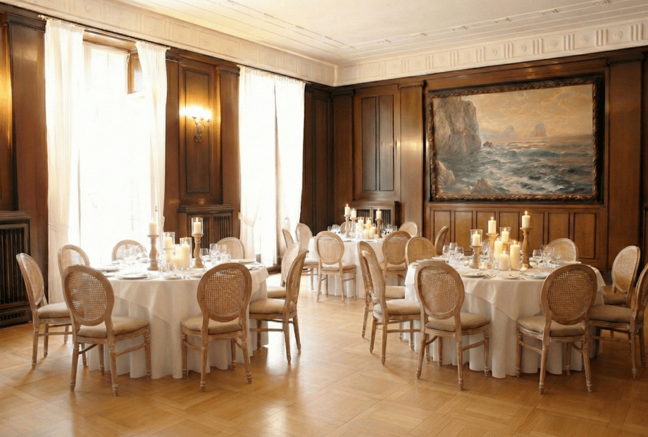 Im Innenbereich der Villa Weißer Berg können bis zu 100 Gäste bequem sitzen. Dadurch eignet sich die Location ideal für stilvolle Hochzeiten und Feiern in besonderer Atmosphäre.