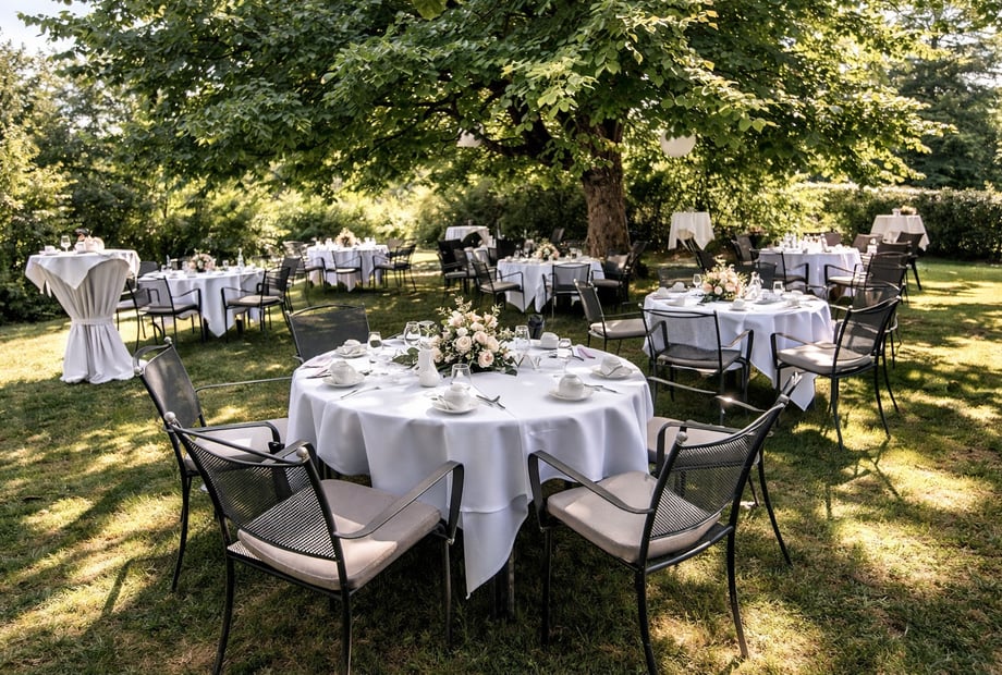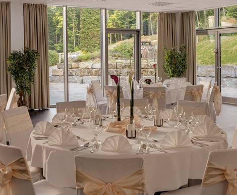 Ob eine freie Trauung unter freiem Himmel mit Blick ins Grüne, ein eleganter Empfang auf der Terrasse oder ein festliches Dinner in stilvoll dekorierten Räumlichkeiten – wir gestalten Ihre Hochzeit individuell und mit viel Liebe zum Detail.