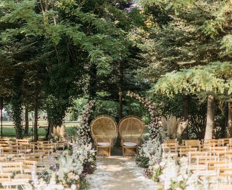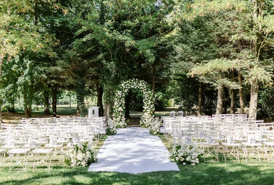 La cérémonie laïque a eu lieu dans le parc du château, à l'ombre des arbres centenaires. L’ambiance était douce et remplie d’émotion.