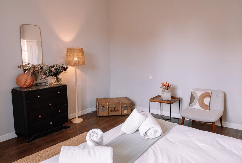 The château also offers on-site accommodations, allowing you and your guests to fully immerse yourselves in the celebration. The newlyweds can retreat to a stunning 100 m² private suite with its own terrace, while nine additional double rooms welcome up to 20 adults and 4 children in a warm, family-home atmosphere.