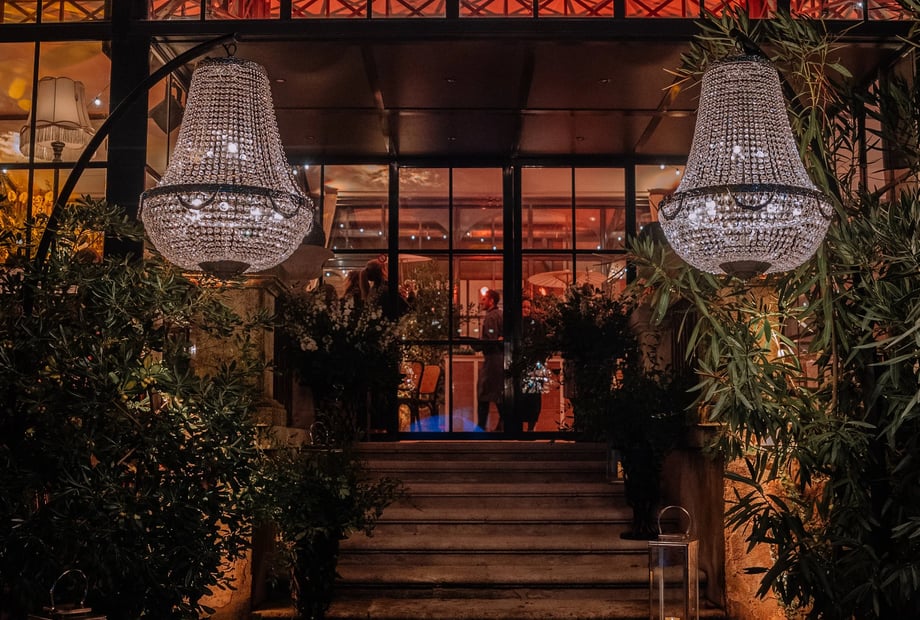 Le dîner s’est tenu en plein air, devant l'orangeraie sous les éclairages guinguette, la soirée dansante s'est ensuite tenu à l'intérieur.