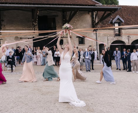 Imaginez une cérémonie en plein air dans le parc du château, sous une arche de fleurs élaborée par un fleuriste de renom, baignée par une lumière dorée au coucher du soleil. Les mariés ont échangé leurs vœux entourés de leurs proches dans une ambiance à la fois élégante et intimiste.