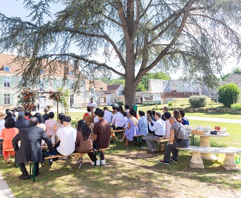 The estate's wedding reception hall, measuring over 300 m², is equipped with restrooms (women's, men's, and disabled access) and a catering kitchen. It can accommodate up to 230 people for a seated meal.