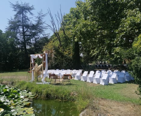 1 - The grounds are enchanting, a natural, peaceful, and varied space of over 4000m2, featuring a wood, a meadow, a fish pond, a swimming pool, and a pétanque court. There's no need to go elsewhere for photos before arriving, unless you're a seaside enthusiast. There are plenty of spots on the grounds perfect for your photo shoot, and you won't be separated from your guests.