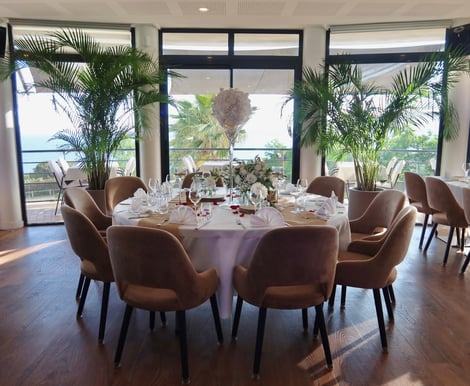 • Spaces: a panoramic dining room, a rooftop (available exclusively with the panoramic room during the warmer months), and a 250 m² reception hall extended by a large sea-view terrace