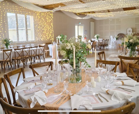 The bright and welcoming reception room allows you to host your guests in an atmosphere that is both elegant and relaxed. It lends itself equally well to bohemian, romantic, chic, or rustic décor, giving the bride and groom complete freedom in creating their own setting.