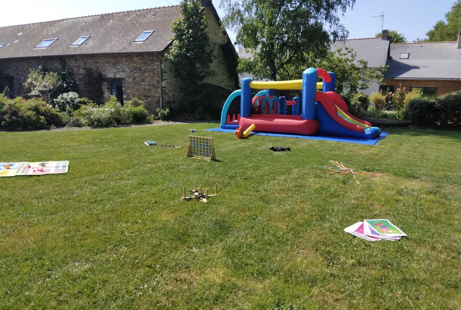 Nous louons la salle de la grange (70 pers assises maximum) +la salle du gîte (50 personnes assises) idéal en cas de pluie pour l'apéro ou espace pour les enfants + salle traiteur+ un grand préau (140 m2) pour les cocktails + couchages 30 pers ( 10 chambres/ 8 salle de bain ) .