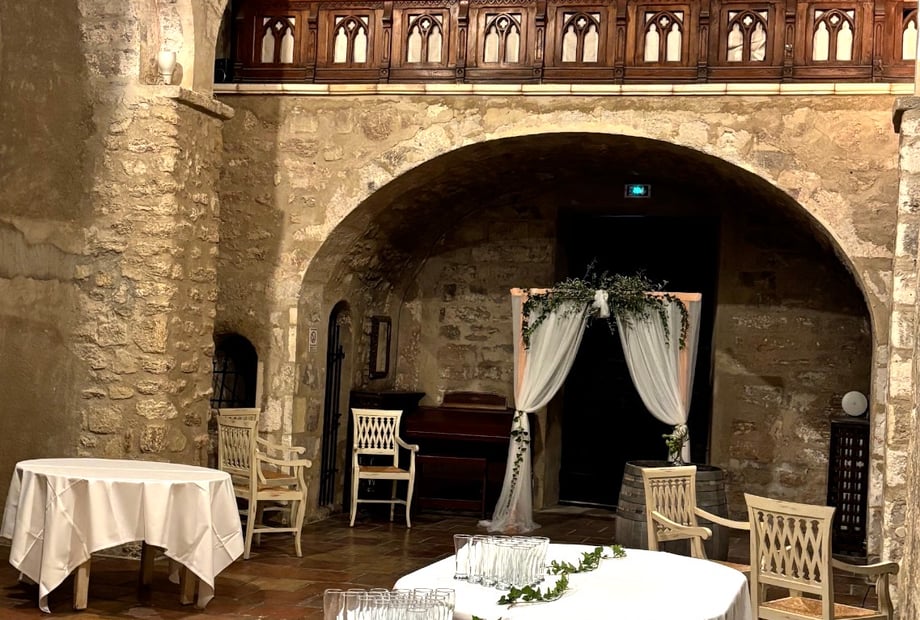 You will have the opportunity to choose between 4 large spaces for an exceptional reception: The Montgallet Room: surface area of 180m² which can accommodate 130 seated guests. The Bernard Room: surface area of 68 m² which can accommodate up to 30 guests. Ideal for a dance floor or for installing children. The Chapel: former chapel of the Abbey transformed into a sumptuous reception space. Can accommodate 80 guests for a seated banquet and 100 people for a ceremony. The Restaurant: with an area of 81 m², it can accommodate 70 guests and enjoy an exceptional panoramic view. The restaurant is also equipped with a panoramic terrace with 120 seats. For any request for information, or for a personalized quote, do not hesitate to contact us.