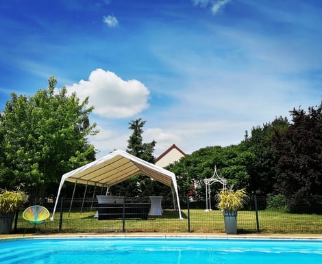 La piscine fait partie intégrante du domaine et contribue à l’atmosphère détendue et conviviale du lieu, notamment sur les mariages organisés sur plusieurs jours.