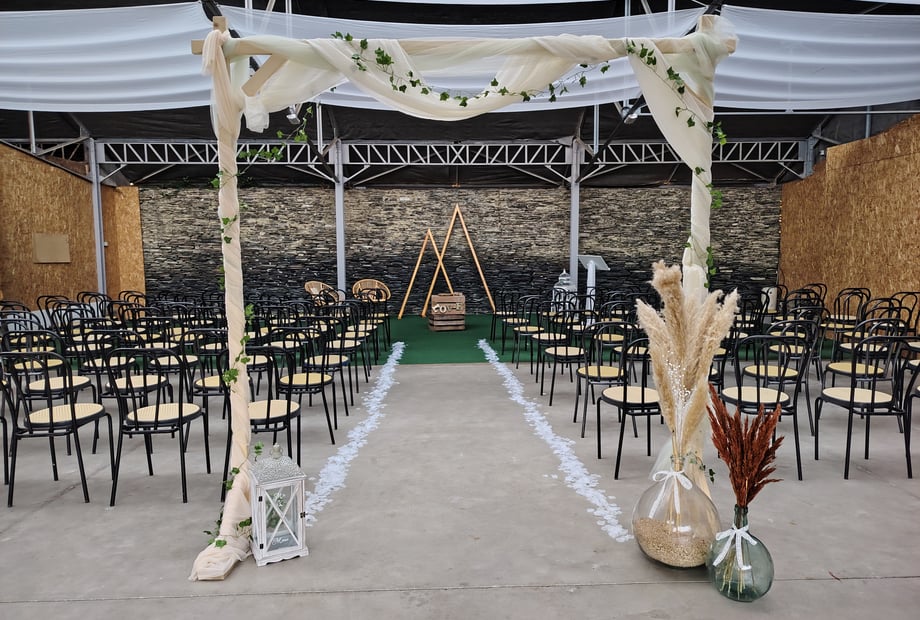 You can have the reception room to accommodate up to 220 seated people, the courtyard of the same surface area for your reception or secular ceremony, a kitchen with cold room, 4 mobile homes for sleeping, (2 4 people and 2 of 6 people)
