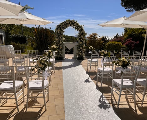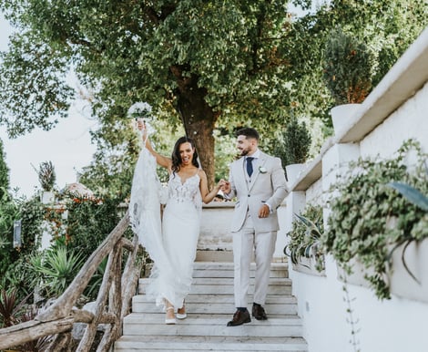 Boasting breathtaking views of the Isle of Capri, the Bay of Naples, and Mount Vesuvius, the venue offers a magical setting filled with picturesque backdrops for unforgettable wedding photos. For those seeking a celebration immersed in the vibrant Mediterranean countryside, this elegant hillside venue provides both charm and sophistication.