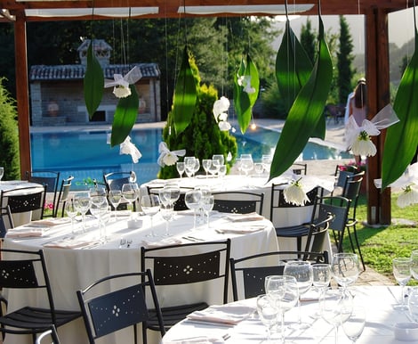 The venue excels for destination wedding weekends. On-site chalets (40 sqm, sleeping 4 with kitchenettes, wooden beams, terracotta floors) mean you and your loved ones stay together, turning your wedding into a mini-holiday. Guests rave about morning-after pool days, exploring Trevignano Romano's lakeside beaches, or easy day trips to Rome's treasures. Menus feature house-made Italian cuisine with excellent local wines, served in light-filled spaces or al fresco amid olive groves. Extend your celebration into a full weekend! Our tailored packages include on-site chalets for all guests, unlimited pool access, and full board (breakfast, lunch, dinner with wines) the days before/after your wedding. Perfect for relaxed mornings by the lake or post-ceremony pool parties. Inquire for custom quotes.