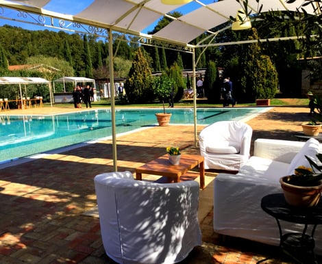 Imagine your ceremony in a natural amphitheatre or floral arch among the woods, followed by poolside aperitifs at the impressive infinity pool that resembles a serene mountain lake. The estate flows effortlessly from outdoor receptions under elegant pergolas to candlelit dinners by the water, then dancing into the night. UK and Northern European couples love this setup: no city hustle, just nature, warm Italian hospitality, and space for 50-150 guests to relax together.