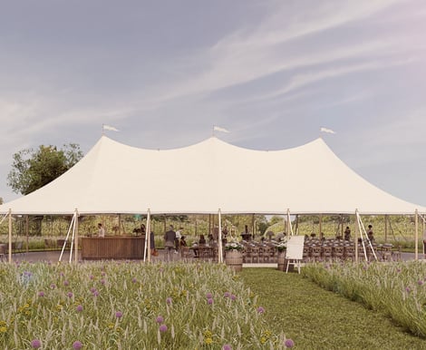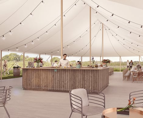Bekesbourne Farm is surrounded by beautiful orchards and rolling Kentish hills, providing breathtaking panoramic views. The luxury sailcloth marquee offers an elegant outdoor space with features including: