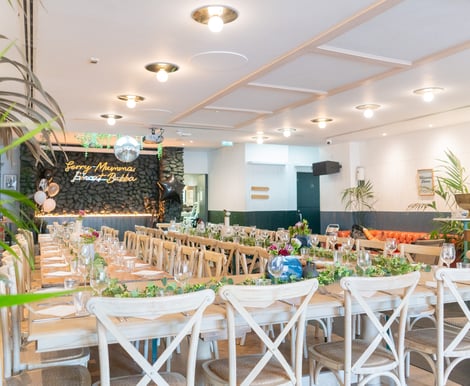 The venue provides a homely, intimate, and cosy atmosphere, especially on the rooftop terrace which transforms into a Mediterranean escape in summer and a winter wonderland in colder months, surrounded by lush plants and magical sunset views.