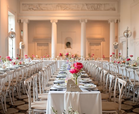 The stunning Adam Hall features an ornate ceiling and original marble floor. It transforms from a beautiful setting for the wedding breakfast into a lively space for the evening celebrations.
