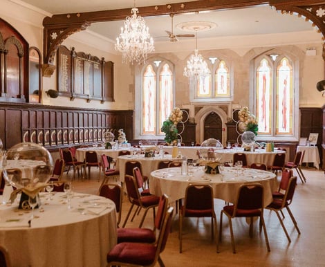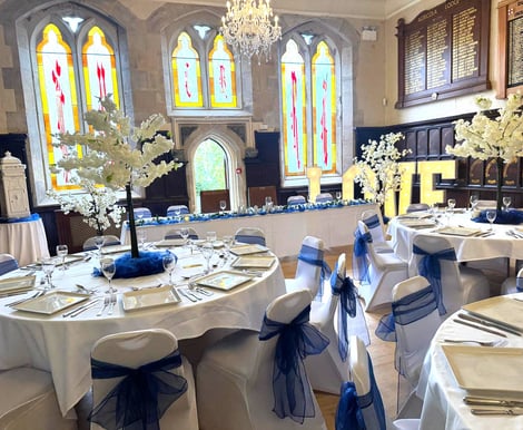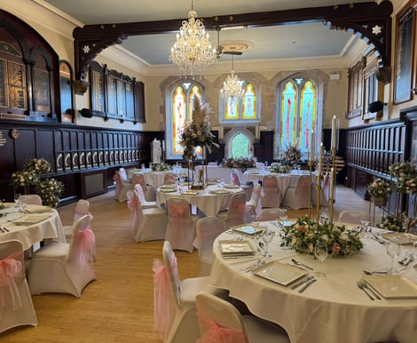 With wood-panelled walls, stunning chandeliers, and breath-taking stained glass windows, Durham Masonic Hall offers a truly unique backdrop for your wedding. Our intimate wedding venue accommodates up to 70 daytime guests and 150 evening guests, perfect for couples who want a venue that feels exclusive yet spacious.