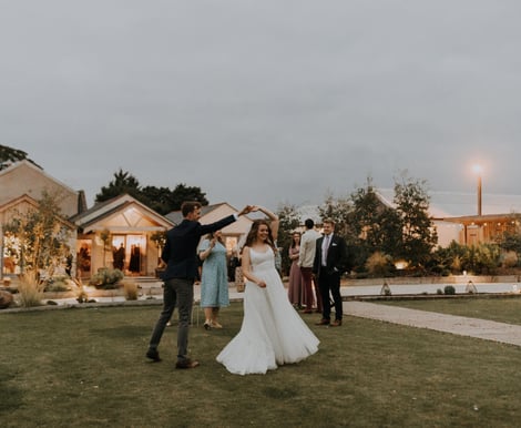 Our favourite is the meadow! A field opposite the barn with a pathway leading you over a bridge over the stream, and stepping stones. It's so calming and the perfect spot for portrait pictures. The sun sets in front of the barn, so that often brings a gorgeous golden light. Group shots are often on the lawns, with the views of pennine hills as the backdrop.