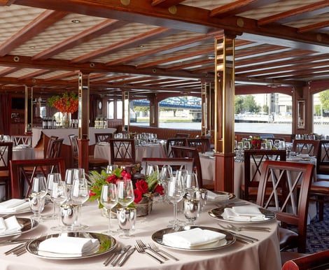 Yes. The Edwardian features a flexible main saloon that can be arranged for seated fine dining or buffet-style meals. Additionally, the open upper deck is perfect for hosting a relaxed drinks reception, offering breathtaking, uninterrupted views of London's skyline.