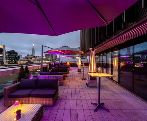 Outdoor terraces with fairylight anfd stunning views on the City
