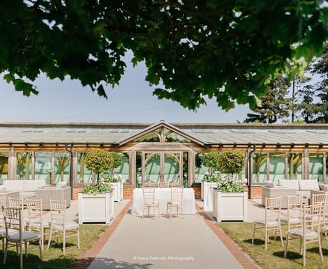 To prepare for the day, the Apple Loft Cottage is a calm and beautifully styled space where you can get ready in comfort and privacy. After spending the morning getting ready, your vows await. Head towards your ceremony through the romantic Heart Gate and wander past the colourful, scented flowerbeds on the Long Walk. As you walk into the Walled Garden you'll make your way down the picture perfect ‘garden aisle’ towards The Orangery. Nowhere else can offer an iconic aisle quite like this.