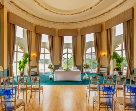 Mesmerising sea views paired with refined interior decor and extraordinary architecture make The Grand Hotel an obvious choice for your celebration. With gorgeous period features throughout and lofty ceilings, you and your loved ones will feel like royalty as you dine and dance in luxury. Renowned for its striking staircase, you and your beloved can take one-of-a-kind wedding photos on its steps. The Sun Terrace sets the scene for a celebratory toast after you've tied the knot. Following your drinks reception, you can head to the Palm Court Ballroom, where up to 150 guests can indulge in a wedding breakfast. With views of the South Bay and ample space for a dance floor and seated meal, you and your guests can enjoy your evening festivities in comfort and style. You can retire to the hotel's lavish accommodations when your day ends.