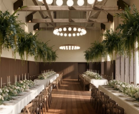 Enjoy this historic collection of wedding venues, available for your civil ceremony, wedding breakfast, and reception, with full privacy and flexibility. Celebrate in four unique spaces: The Barn, The Coachhouse, The Glasshouse, and The Stables, perfect for weddings of up to 120 guests.
