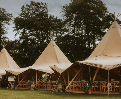 Celebrate your wedding breakfast in our treble tipi, nestled within the woodland and surrounded by the beauty of nature. With seating for up to 120 guests, it's a magical forest setting where dining and celebration come together under the canvas.